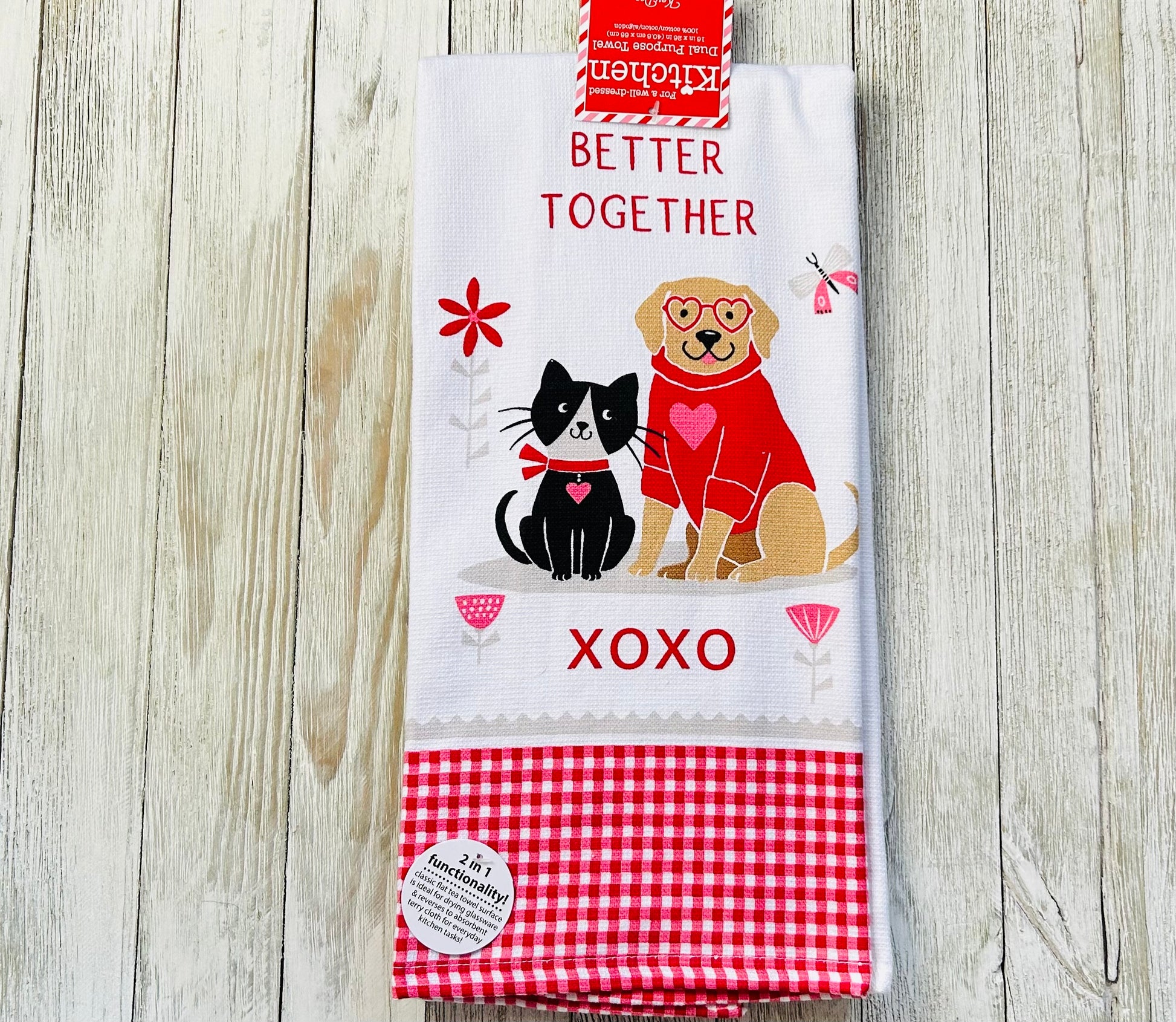 Dish Towel -Valentines Day - Dog and Cat XOXO