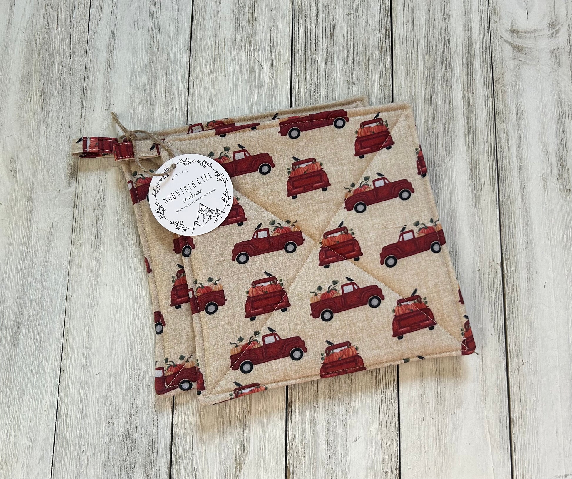 Potholder Set - Fall Themed - Harvest Red Trucks