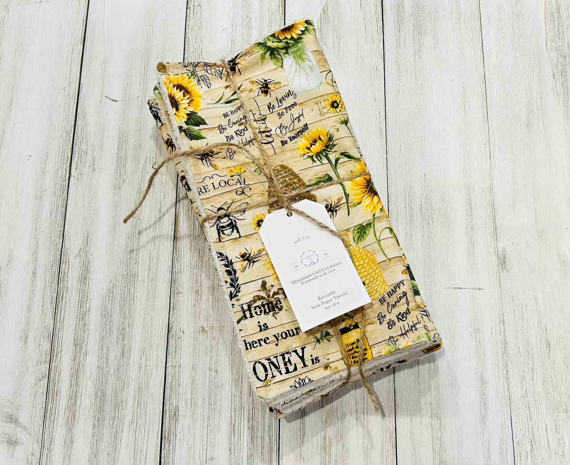 Our Reusable towels are a great way to save money and help the environment! Each set comes with 6 towels that are made with 100% cotton fabric on one side and Terry cloth on the other.