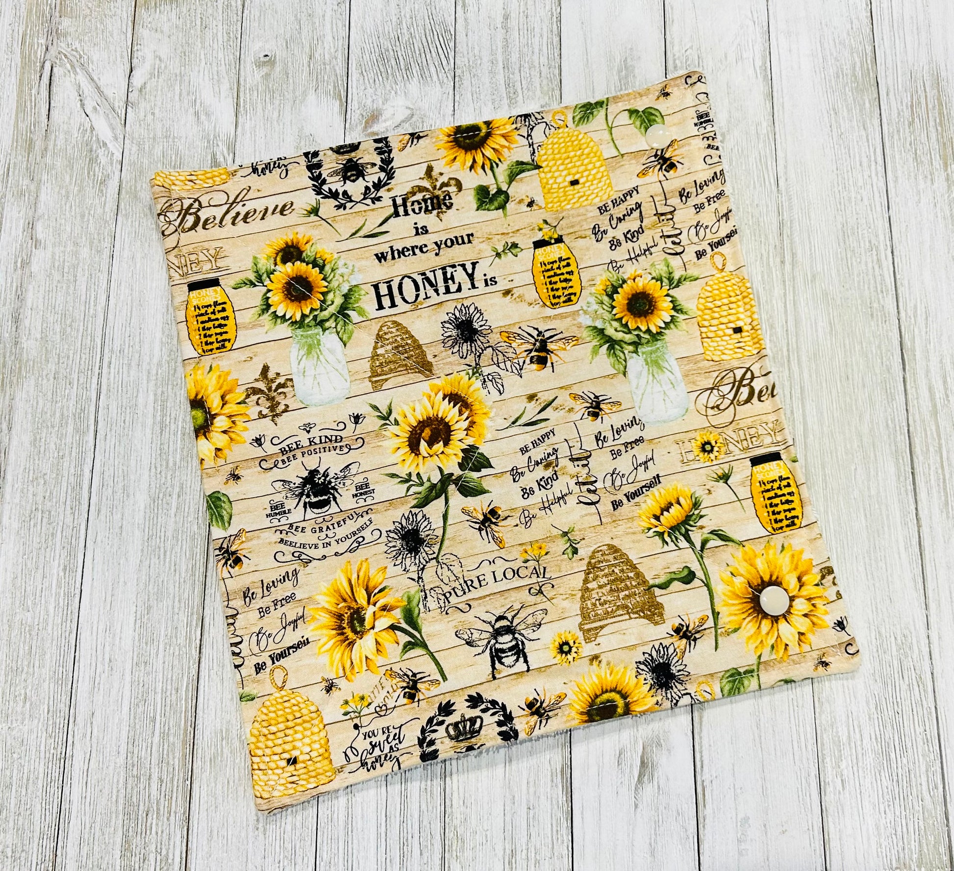 Your choice of Towels with Snaps (11 x 10) that fit on your Paper Towel Roll or No Snaps (10x10) that can be placed in a pretty basket or in a drawer for a quick grab!