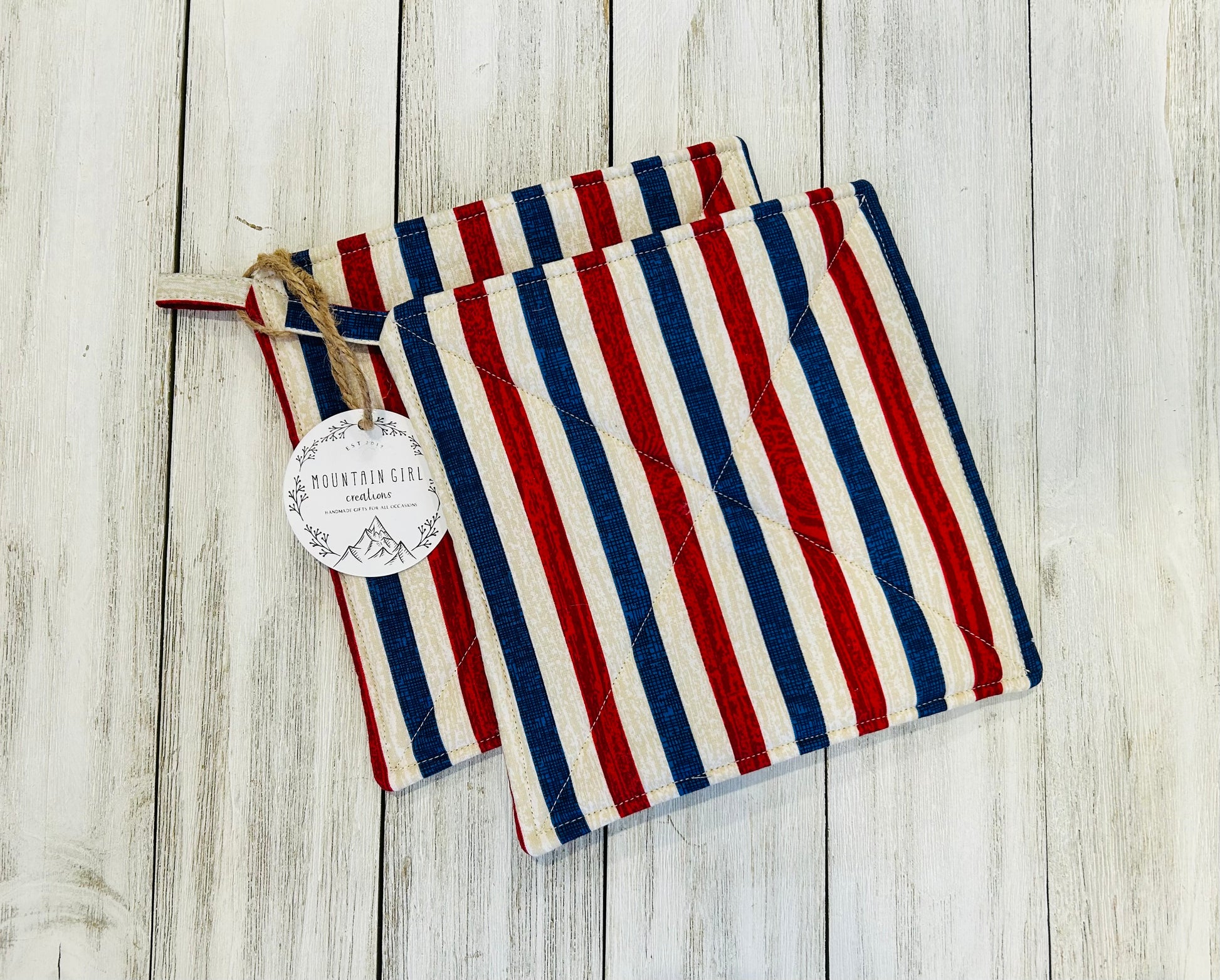 Potholder Set - Patriotic Themed - Stripes - 4th of July Potholders